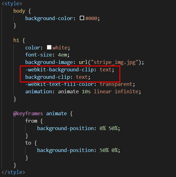 여기서 중요한 태그는 background-clip, @keyframes, animation 정도가 되겠네요!