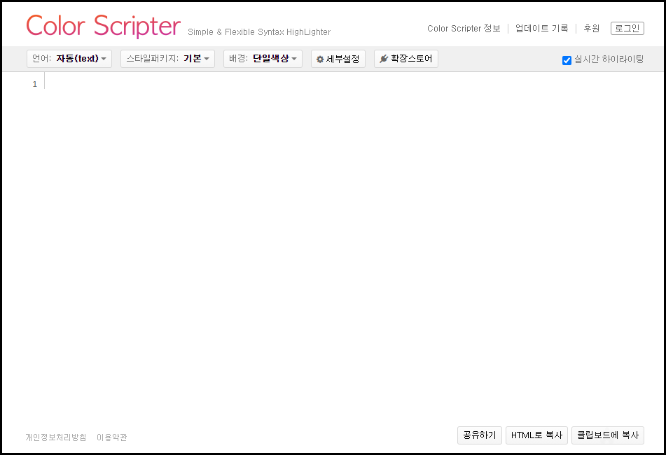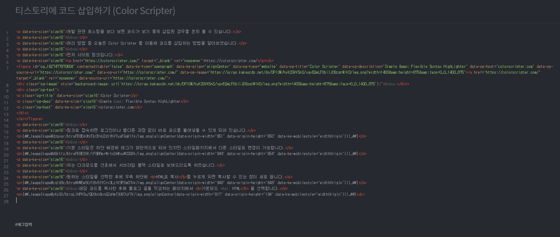 티스토리에 코드 삽입하기 (Color Scripter)