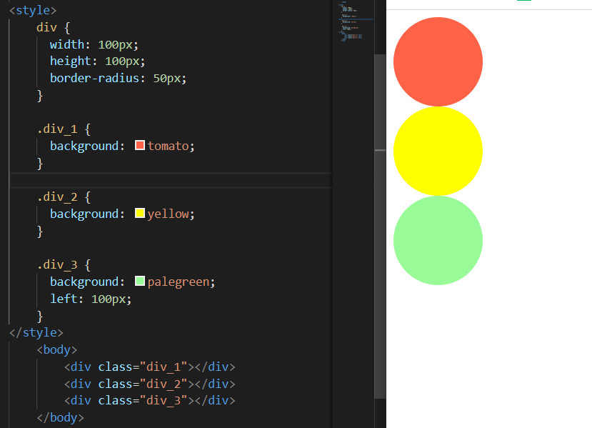 아래와 같은 속성값을 3개의 div 에 정의하고 div_3 클래스에만 left 속성을 부여하겠습니다.