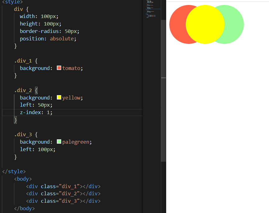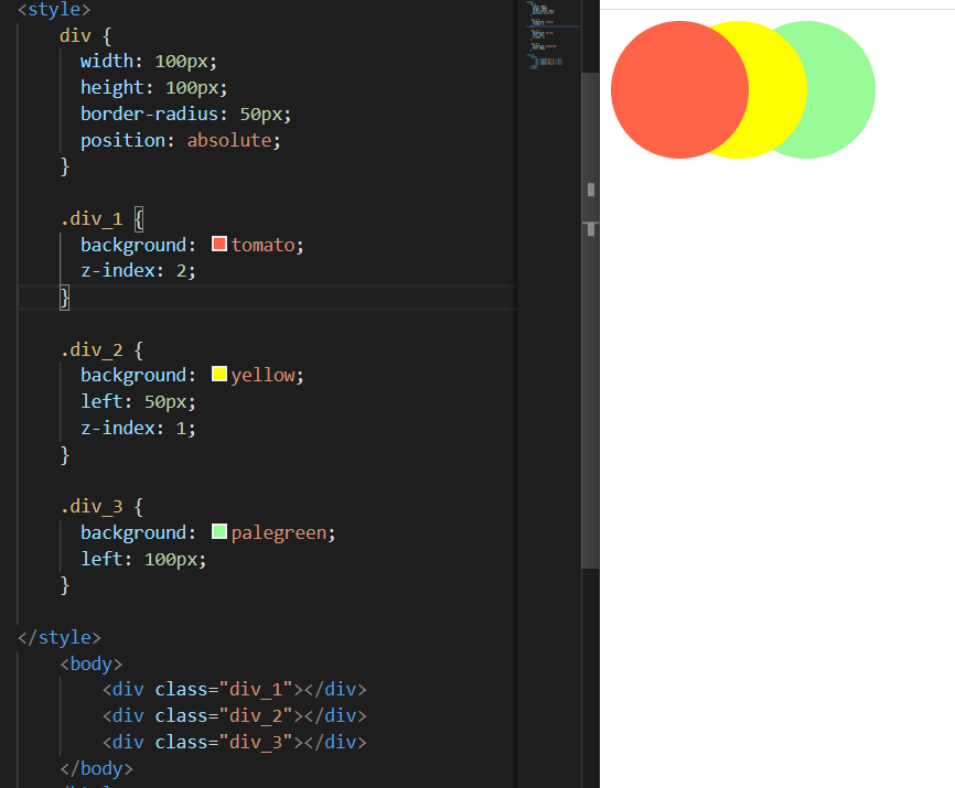 - z-index 의 값인 숫자가 높을 수록 가장 상단(보이는 화면에서 가깝게)에 배치되며 낮을 수록(보이는 화면에서 멀게) 배치됩니다.