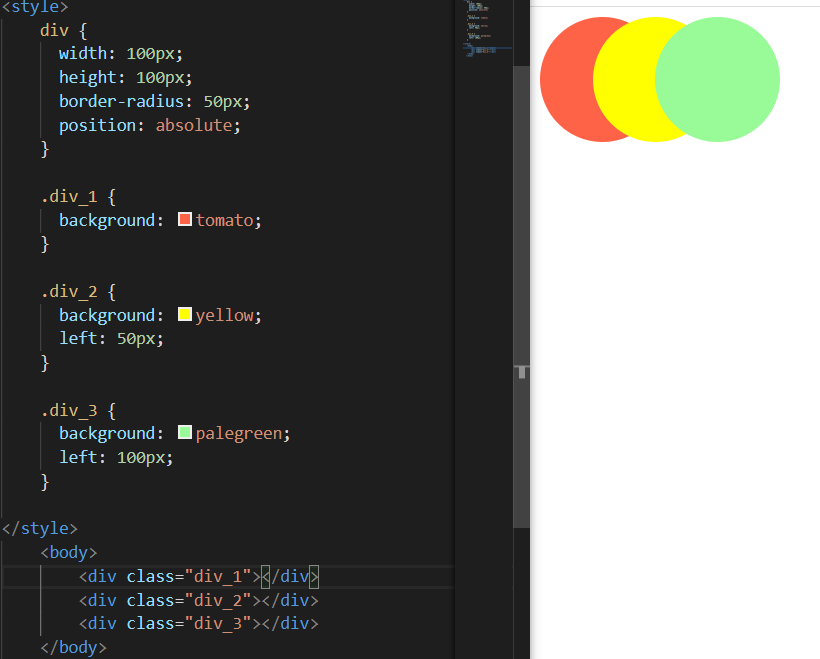활용 예제를 알아보기 위해 아래와 같이 3개의 div 에 style 을 부여했습니다.
