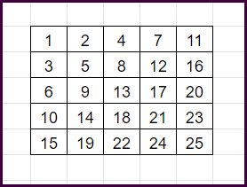 5행 5열의 배열이 존재할 때 아래와 같은 형식으로 데이터가 들어가는 것을 말합니다.