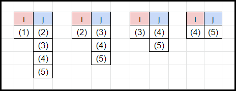 j의 시작값이 i에서 +1 되는 걸 알 수 있습니다.