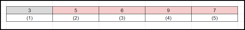 이때 1회전 때 (1)번지의 값을 (2), (3), (4), (5) 번지의 값들과 비교해