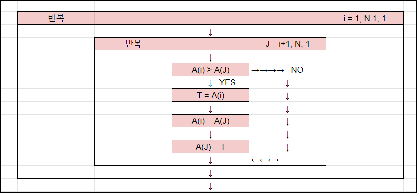 A(i) > A(J) 가 YES여서 교환한다면 작은 값이 앞으로 보내지기 때문에 오름차순,