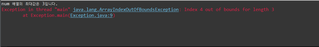 System.out.println("num[4]에 값을 입력했습니다.");