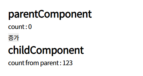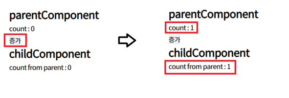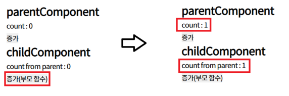 자식 컴포넌트에서도 부모가 제공한 increment() 함수를 실행하여 count를 변경할 수 있습니다.
